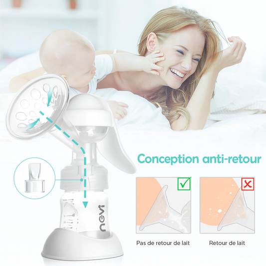 Le tire-lait manuel est simple d'utilisation, facilement transportable et fourni avec des embouts ergonomiques. L'extraction du lait par le mamelon tire l'essentiel et quand bébé se réveille vous pouvez lui donner un biberon de lait maternel et éviter l'engorgement.